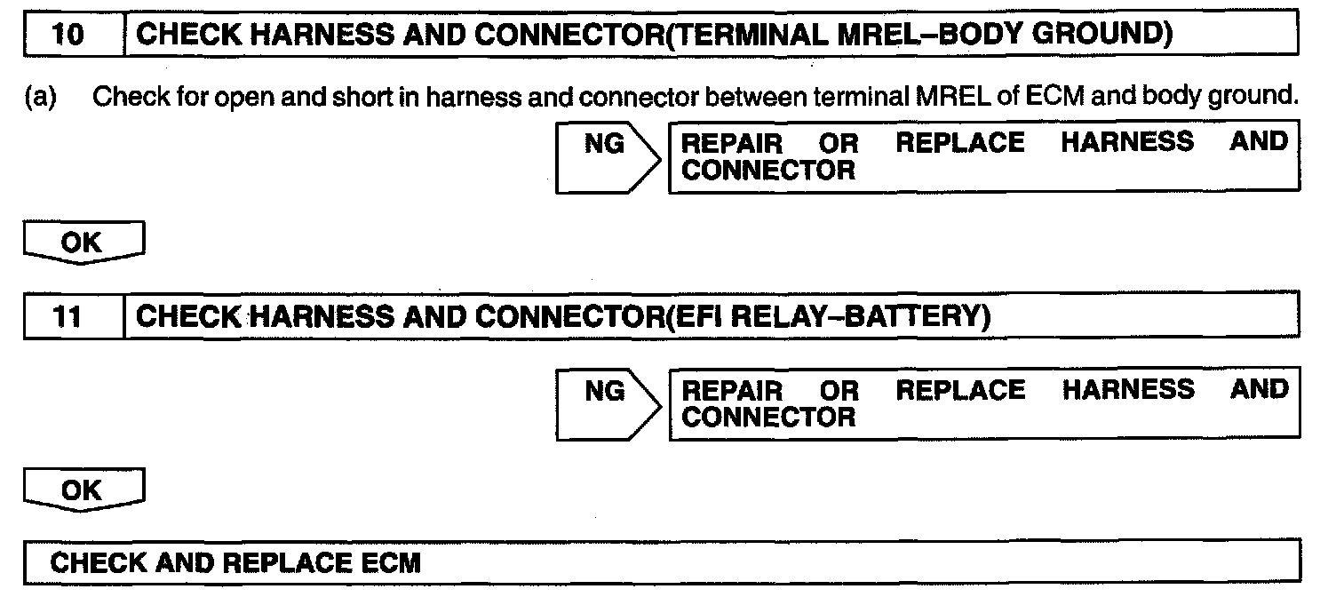 This signal causes current to flow to the coil, cutting off the contacts of the EFI main relay and supplying power to terminals +B of the ECM.