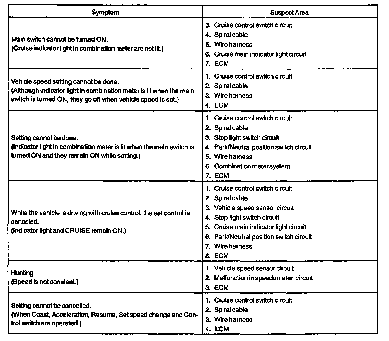 Problem Symptoms Table: