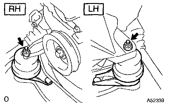 a. Remove the 2 nuts, and separate engine mounting insulator RH and LH.