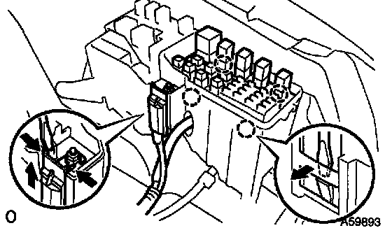 2) Using a screwdriver, unlock the engine room junction block. Separate the engine wire by pulling it upward.