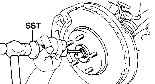 37. REMOVE FRONT AXLE HUB LH NUT