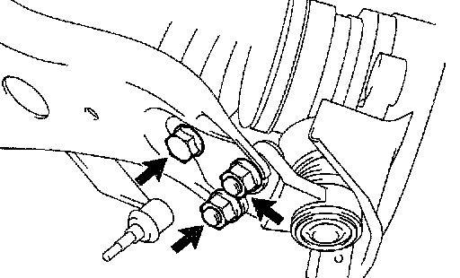 a. Remove the bolt and 2 nuts, and separate the front suspension arm from the lower ball joint.