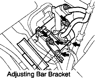 a. Remove the bolt, nut and adjusting bar bracket.