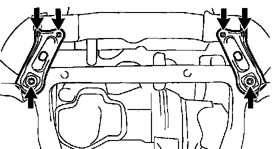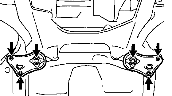 c. Remove the 4 bolts and 2 nuts, front suspension member brace rear RH and LH.