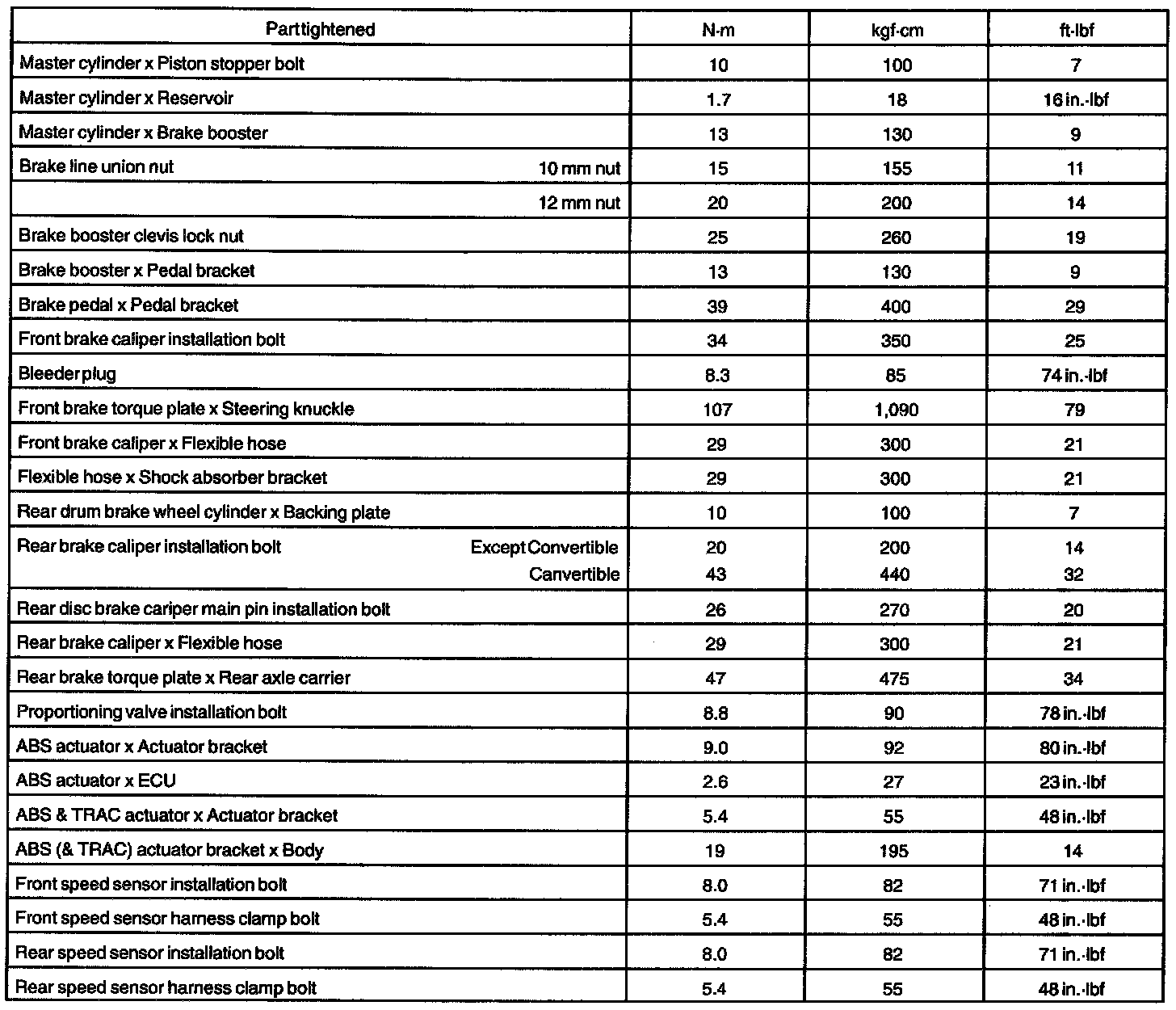 BRAKE SERVICE DATA: