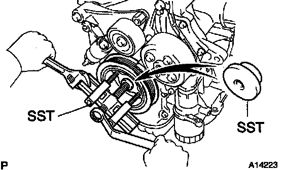 HINT: If necessary, remove the pulley with SST.