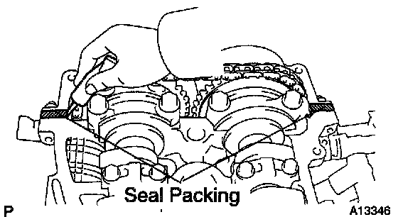 b. Apply seal packing to 2 locations as shown in the illustration.