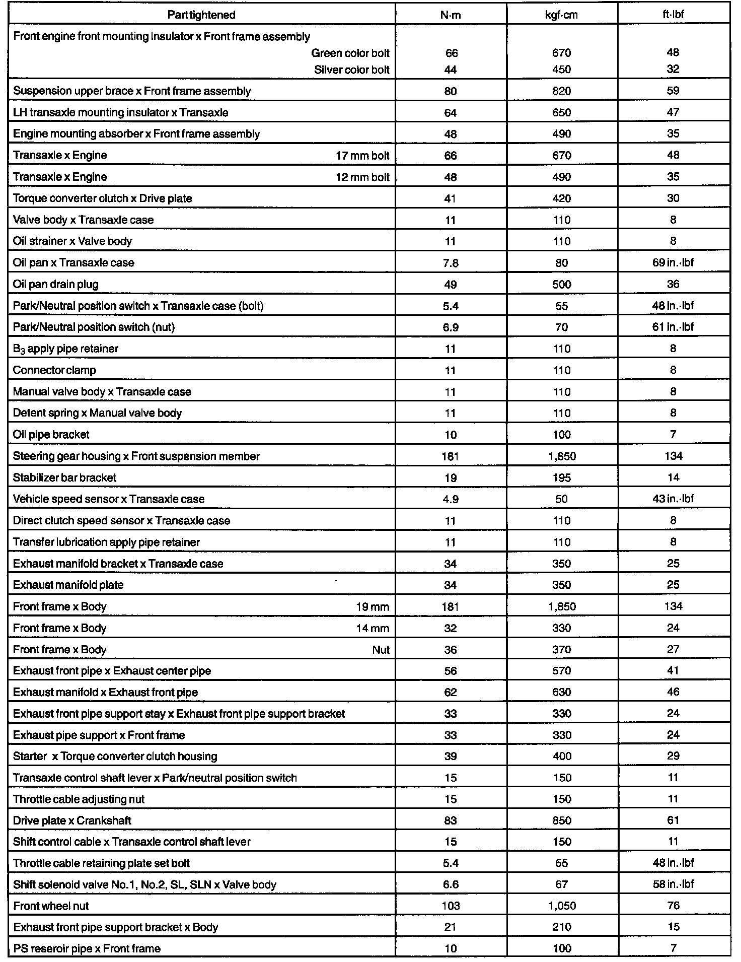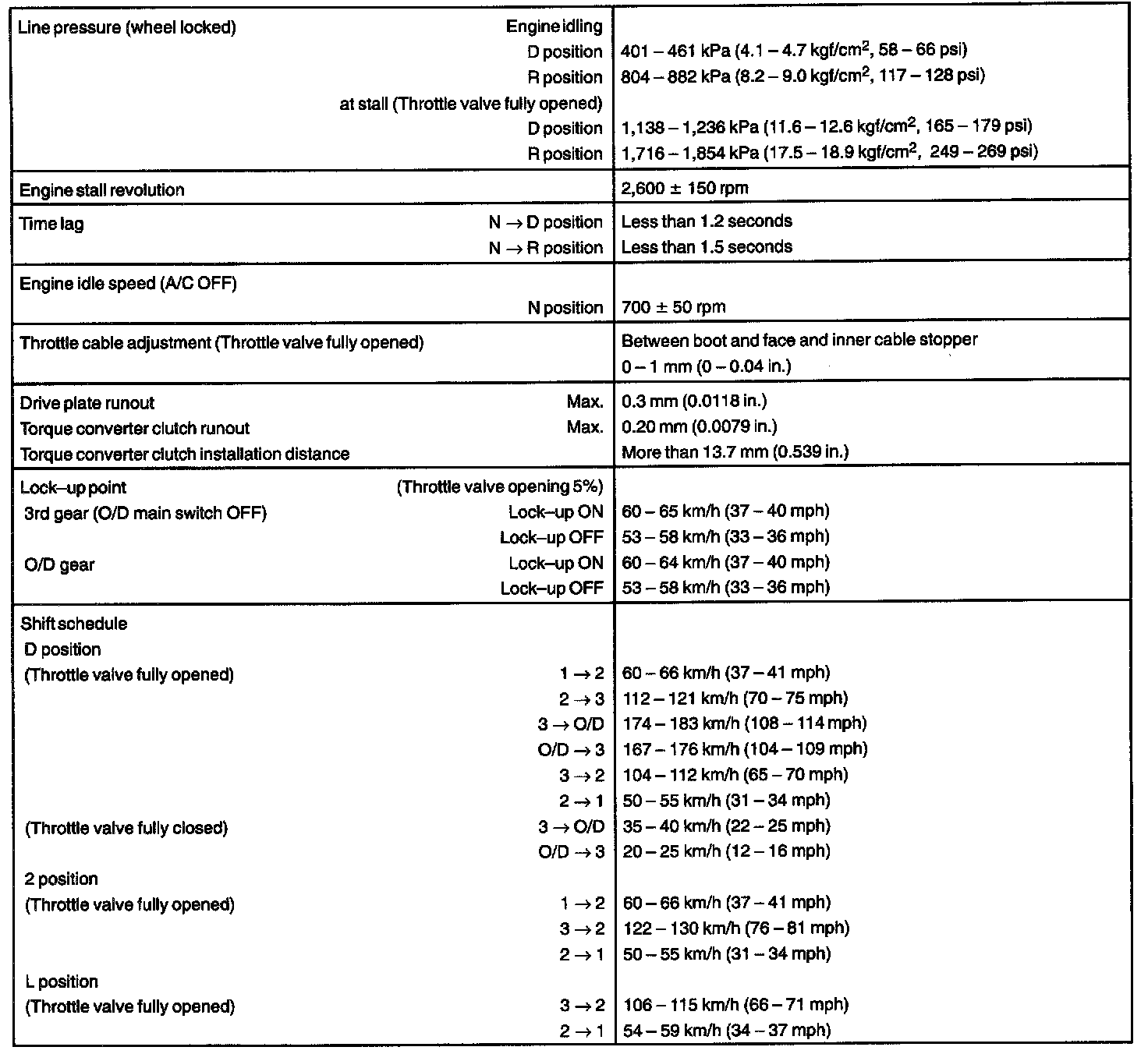 AUTOMATIC TRANSAXLE (U241E) SERVICE DATA: