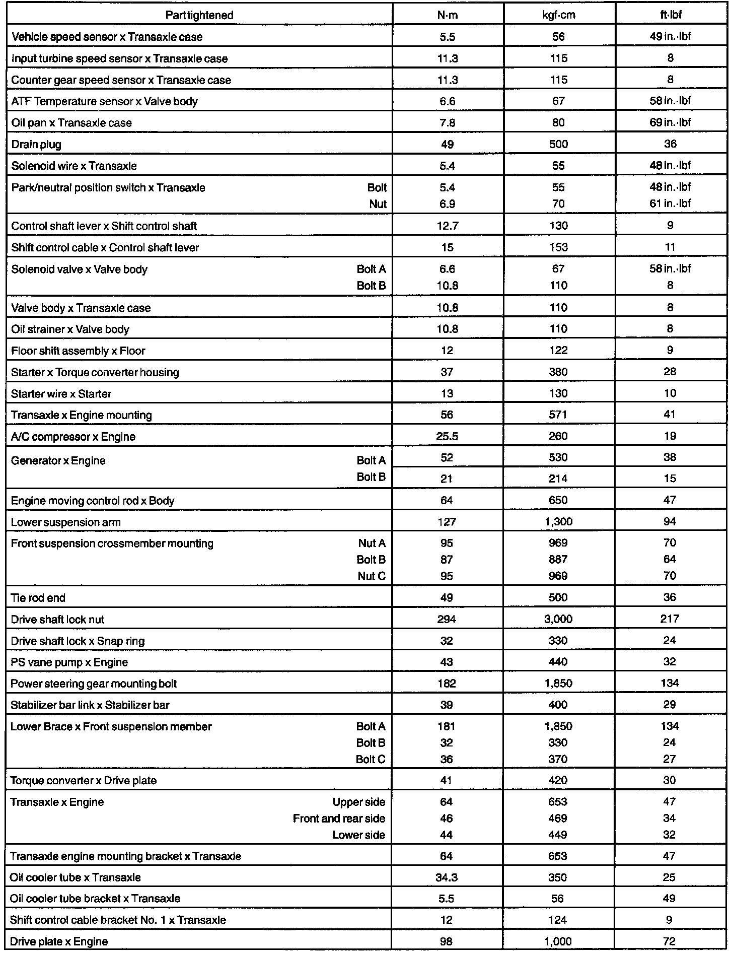 AUTOMATIC TRANSAXLE (A541E) SERVICE DATA: