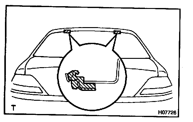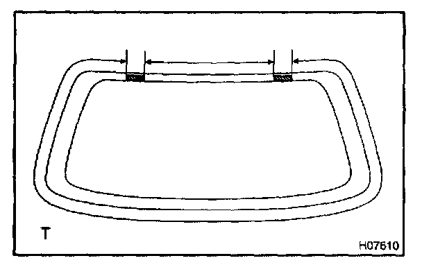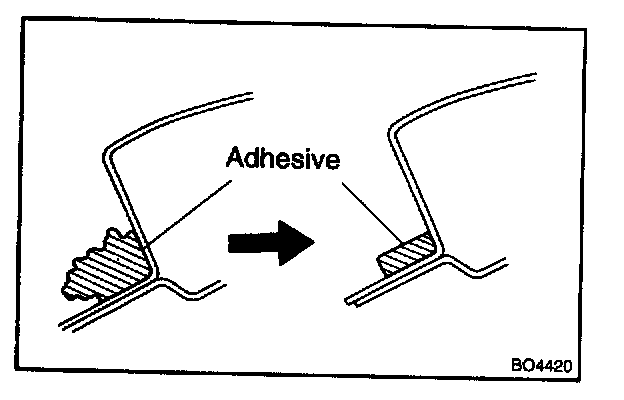 b. Hold the back window glass in place securely with a protective tape or equivalent until the adhesive hardens.