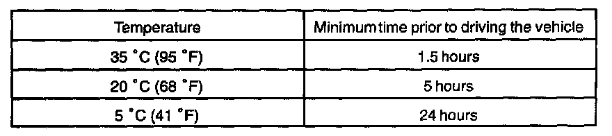 NOTE: Take care not to drive the vehicle during the time described in the table.