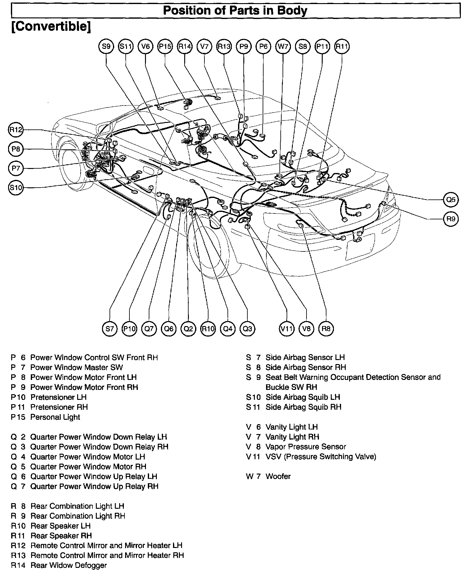 Position Of Parts In Body - Convertible Part 2:
