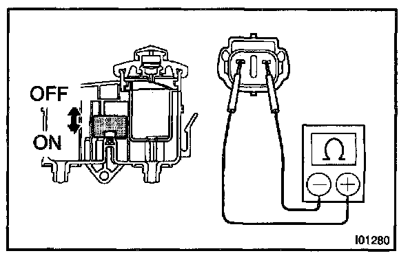 e. Check that there is continuity between the terminals with the switch ON (float down)