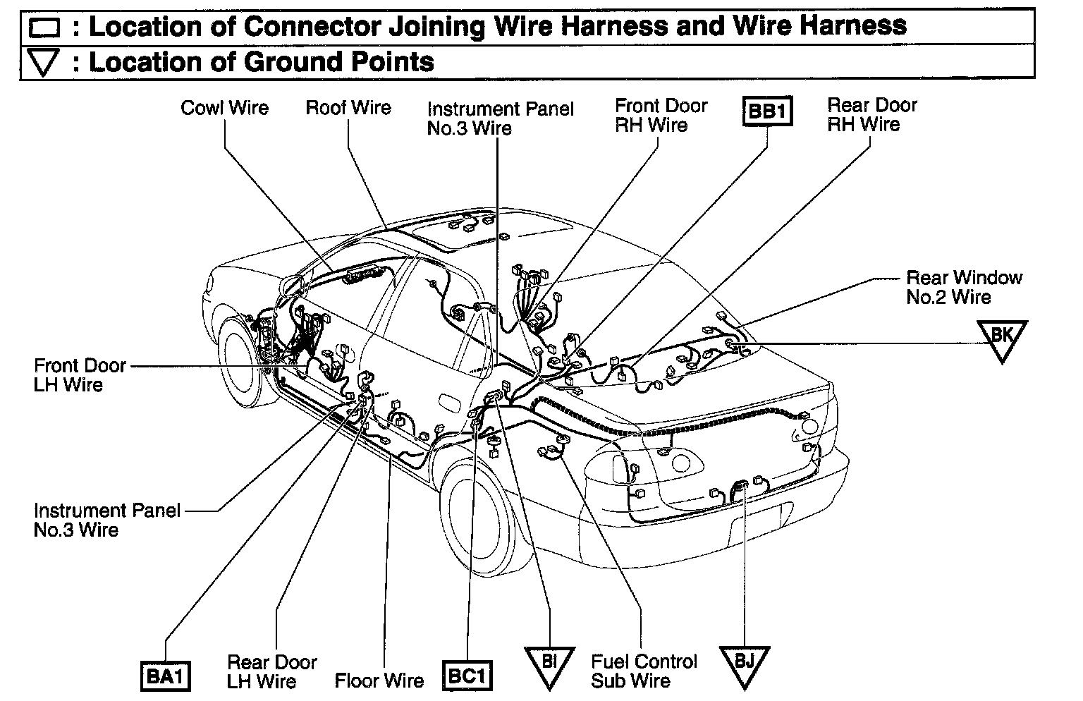BA1 Rear Door LH Wire and Cowl Wire (Under the Left Center Pillar)