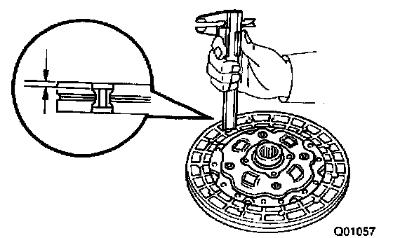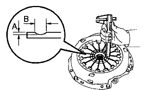 Using vernier calipers, measure the diaphragm spring for depth and width of wear.