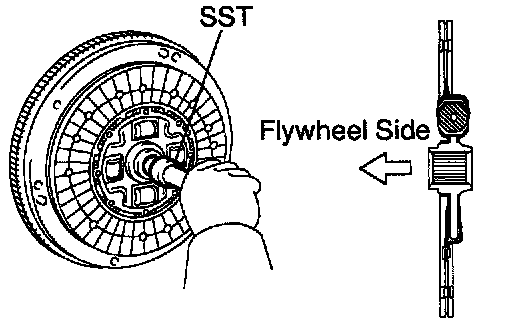 a. Insert SST in the clutch disc, then insert them in the flywheel.