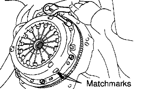 b. Align the matchmarks on the clutch cover and flywheel.