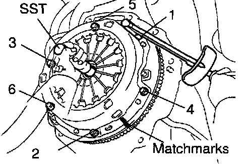 a. Align the matchmark on the clutch cover with the one on the flywheel.