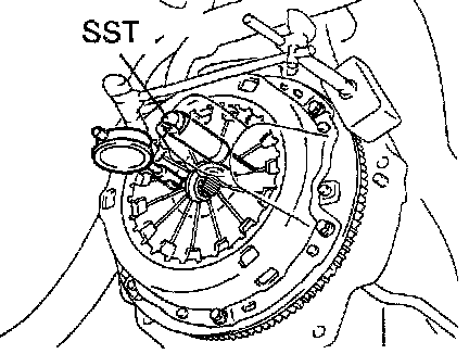 If alignment is not as specified, using SST, adjust the diaphragm spring tip alignment.