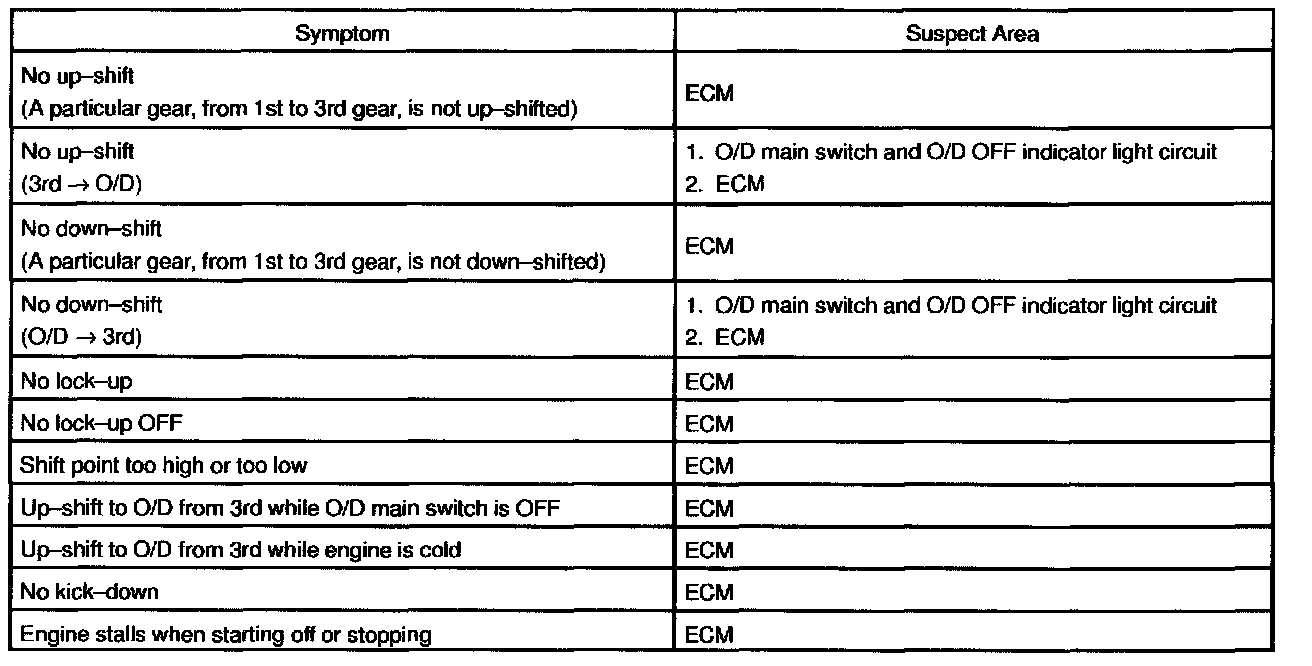 PROBLEM SYMPTOMS TABLEHINT: If a normal code is displayed during the DTC check but the trouble still occurs, check the circuits for each symptom in the order given in the charts and proceed to the given troubleshooting.