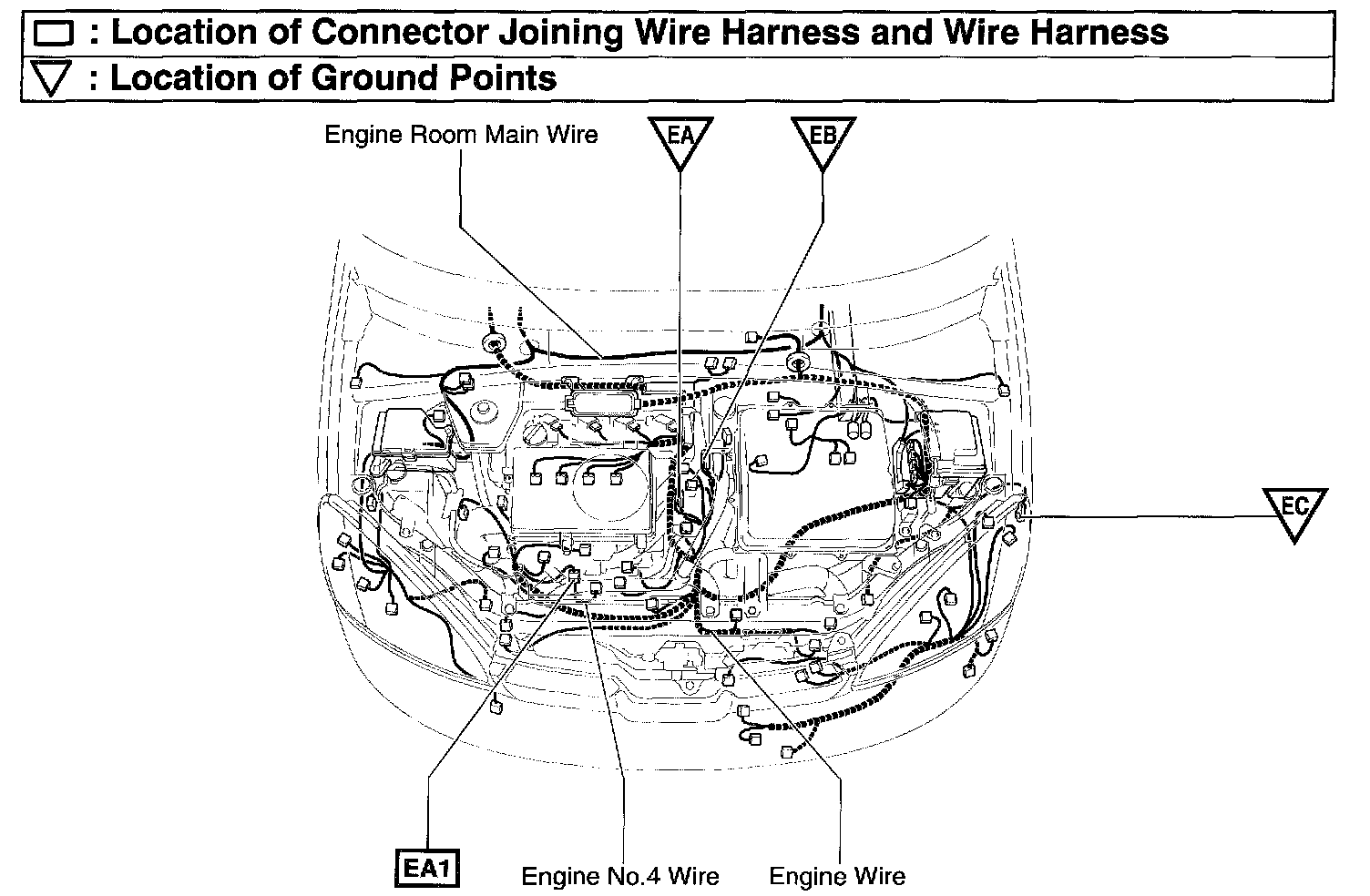 EA1 Engine Wire and Engine No.4 Wire (Near the Radiator Fan)