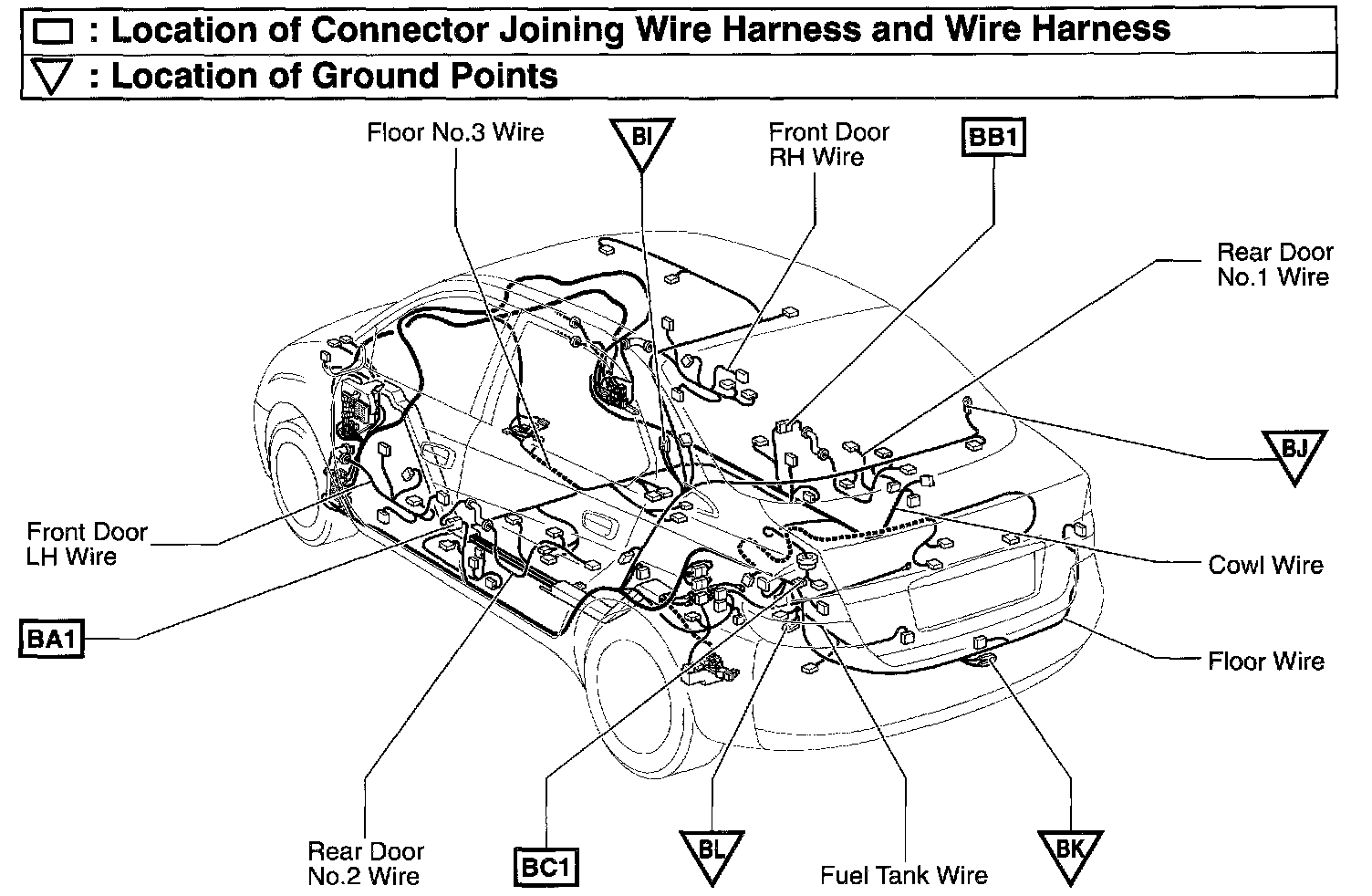 BA1 4 Rear Door No.2 Wire and Floor Wire (Center Pillar LH)