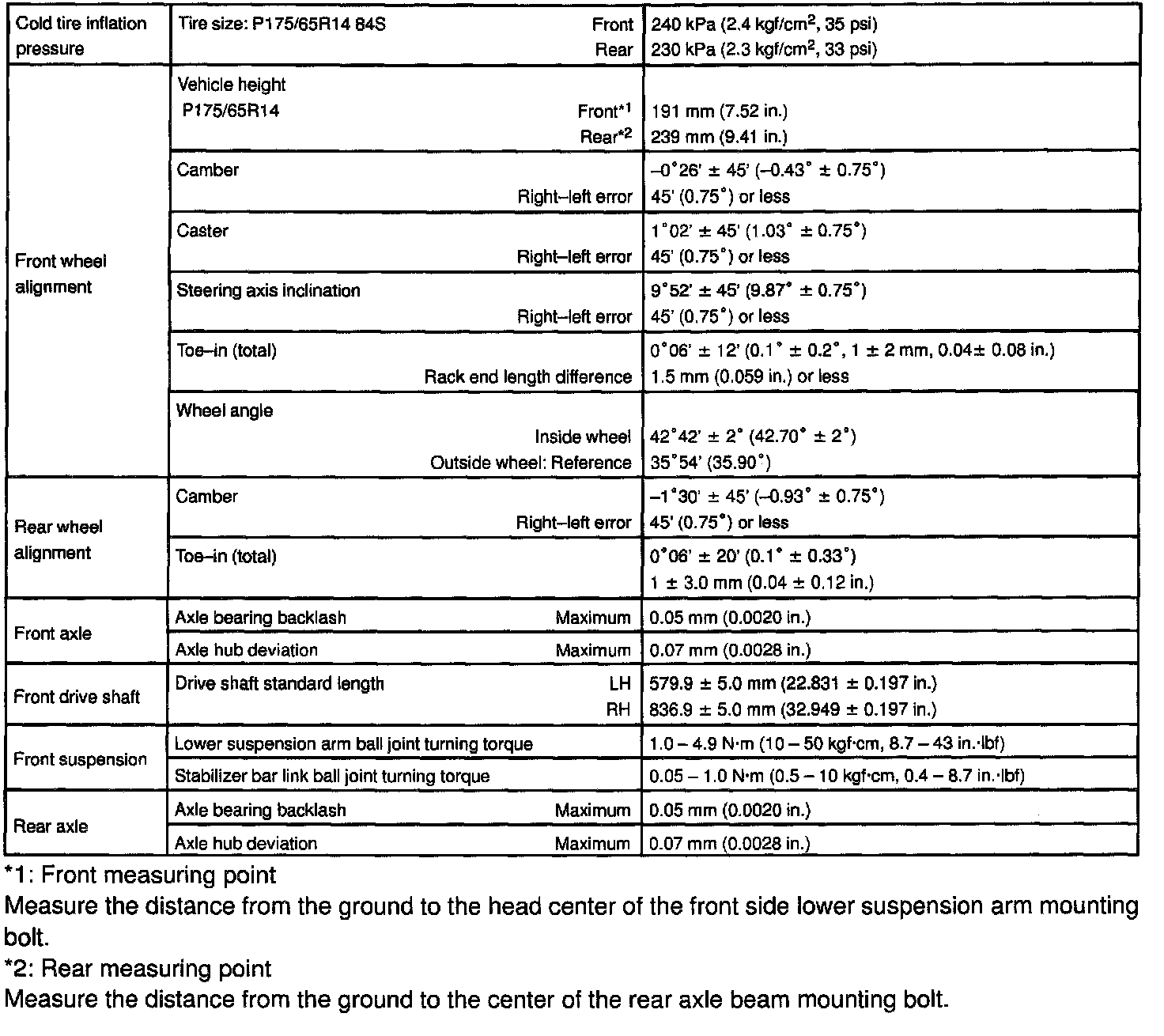 SUSPENSION AND AXLE SERVICE DATA: