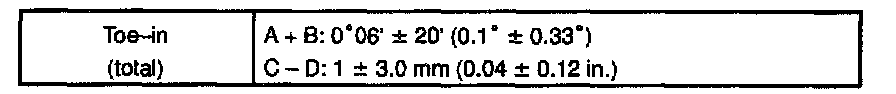 If the toe-in is not within the specified value, inspect and replace the suspension parts as necessary.
