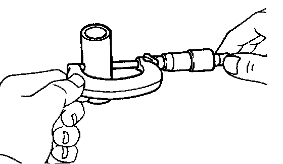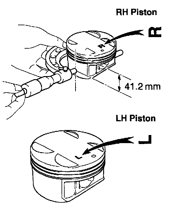a. Using a micrometer, measure the piston diameter at right angles to the piston pin center line, 41.2 mm (1.622 inch) from the piston head.