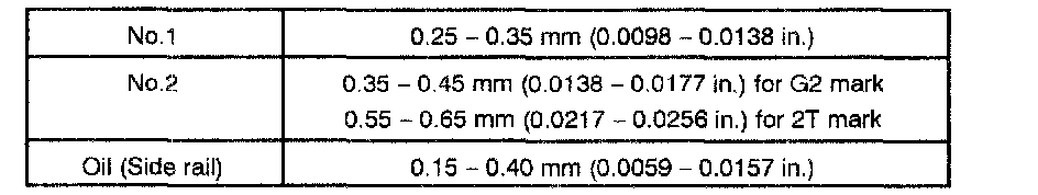 If the end gap is greater than maximum, replace the piston ring. If the end gap is greater than maximum, even with a new piston ring, replace the cylinder block.