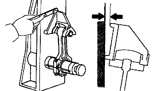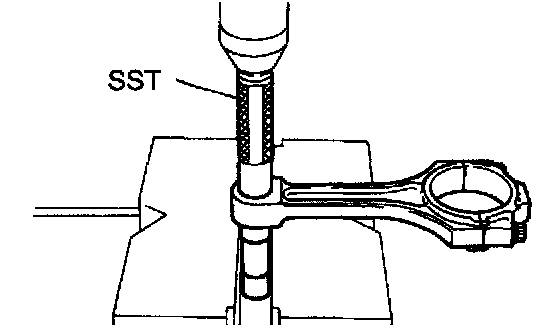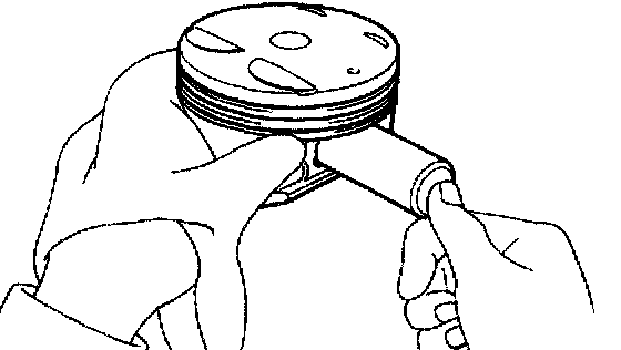 e. Check the piston pin fit at normal room temperature. Coat the piston pin with engine oil, and push it into the connecting rod with your thumb.