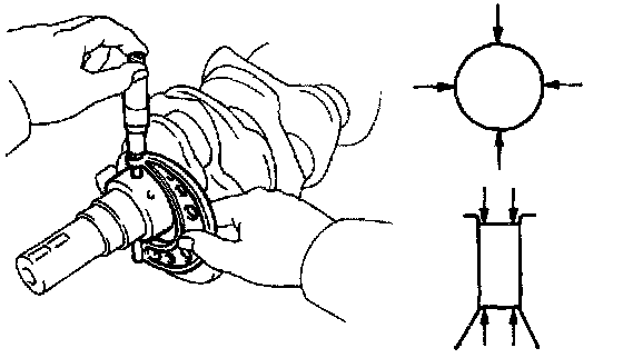 b. Check each main journal and crank pin for taper and out of-round as shown.
