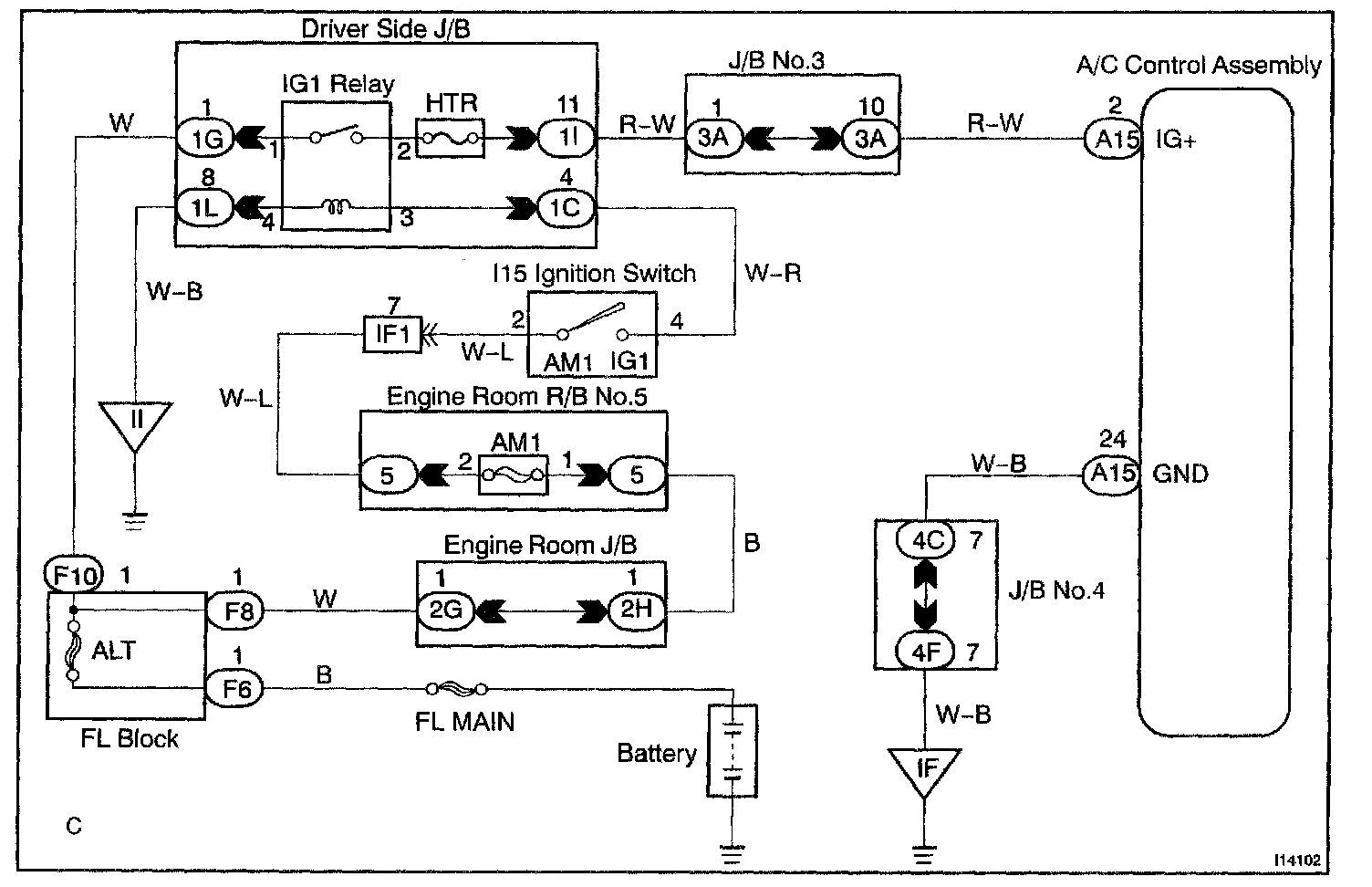 This is the power source for the A/C control assembly (contains the ECU) and servomotors, etc
