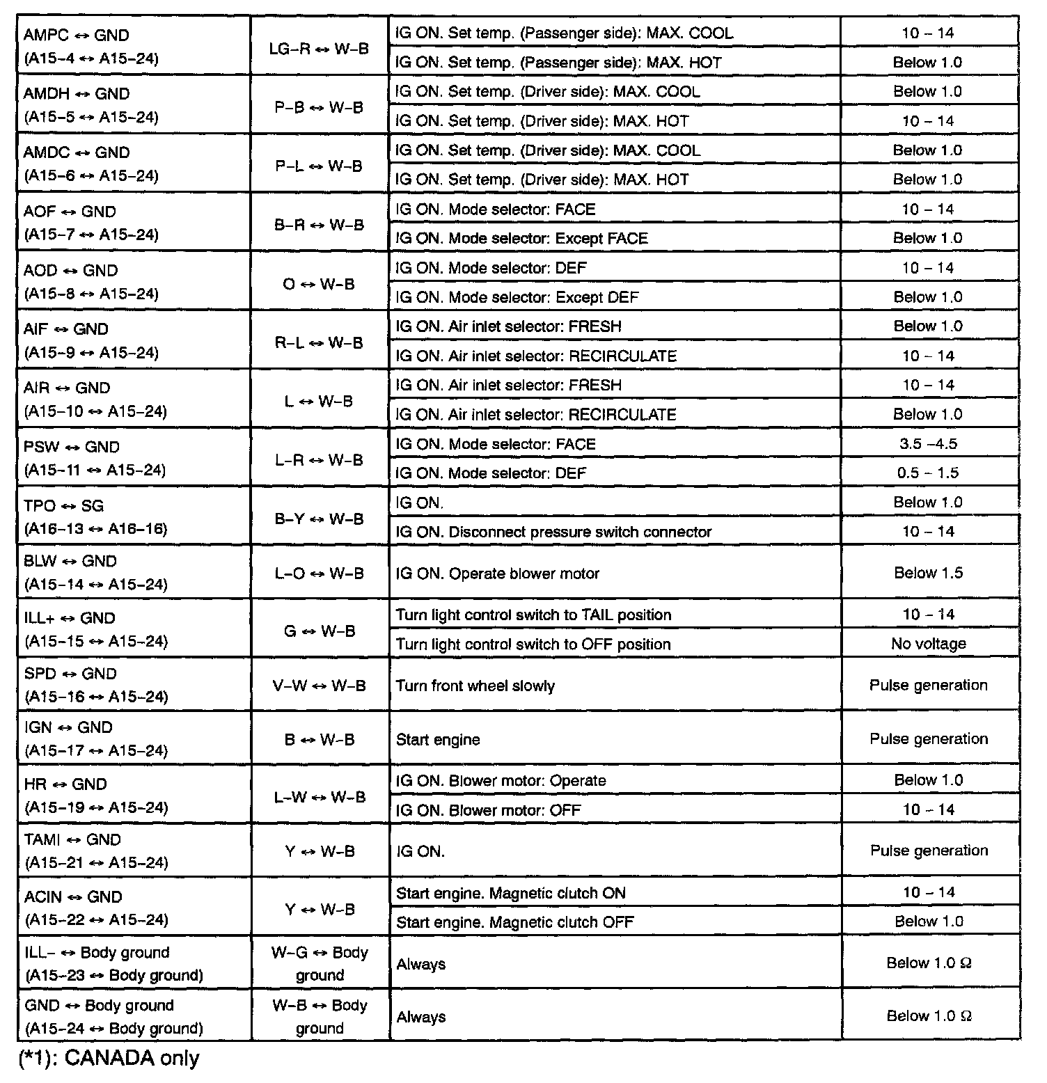 Pinout Values and Diagnostic Parameters