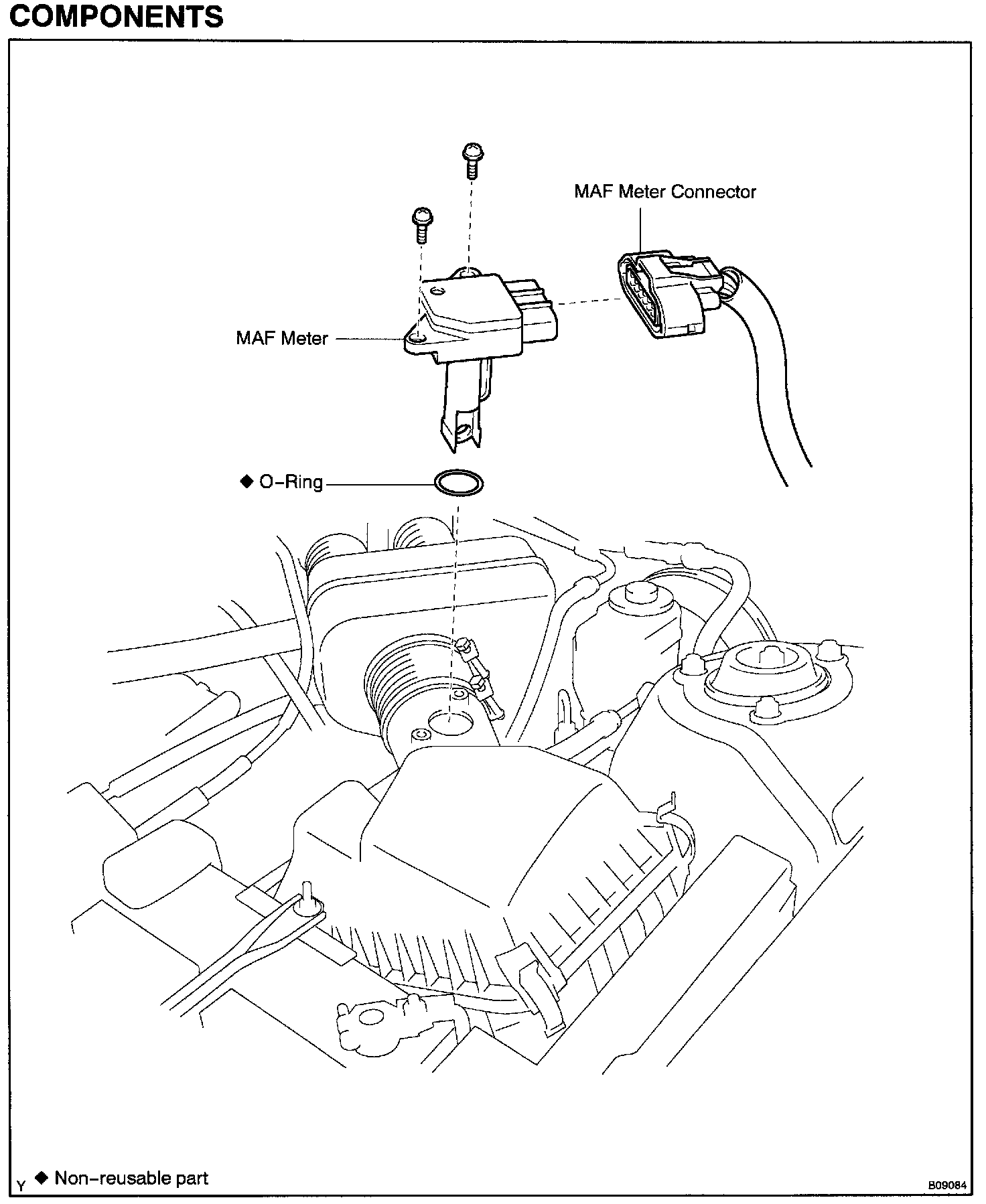 b. Remove the 2 screws, MAF meter and O-ring.