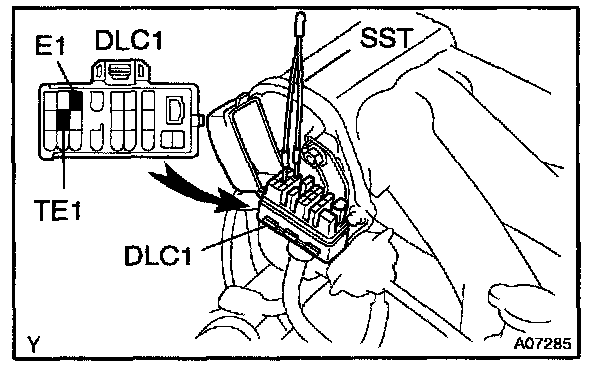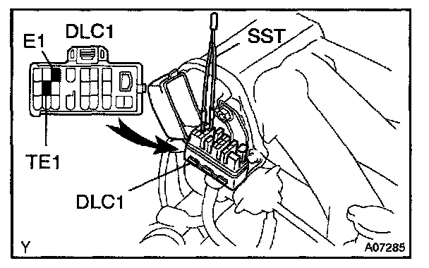 b. Using SST, connect terminals TE1 and E1 of the DLC1.