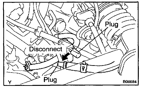 f. Disconnect the air assist hose from the air pipe, and block off the IAC valve exit and the entry to the pipe.