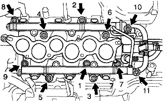 Intake manifold x Cylinder head 15 Nm (150 kgf-cm, 11 ft. lbs.)
