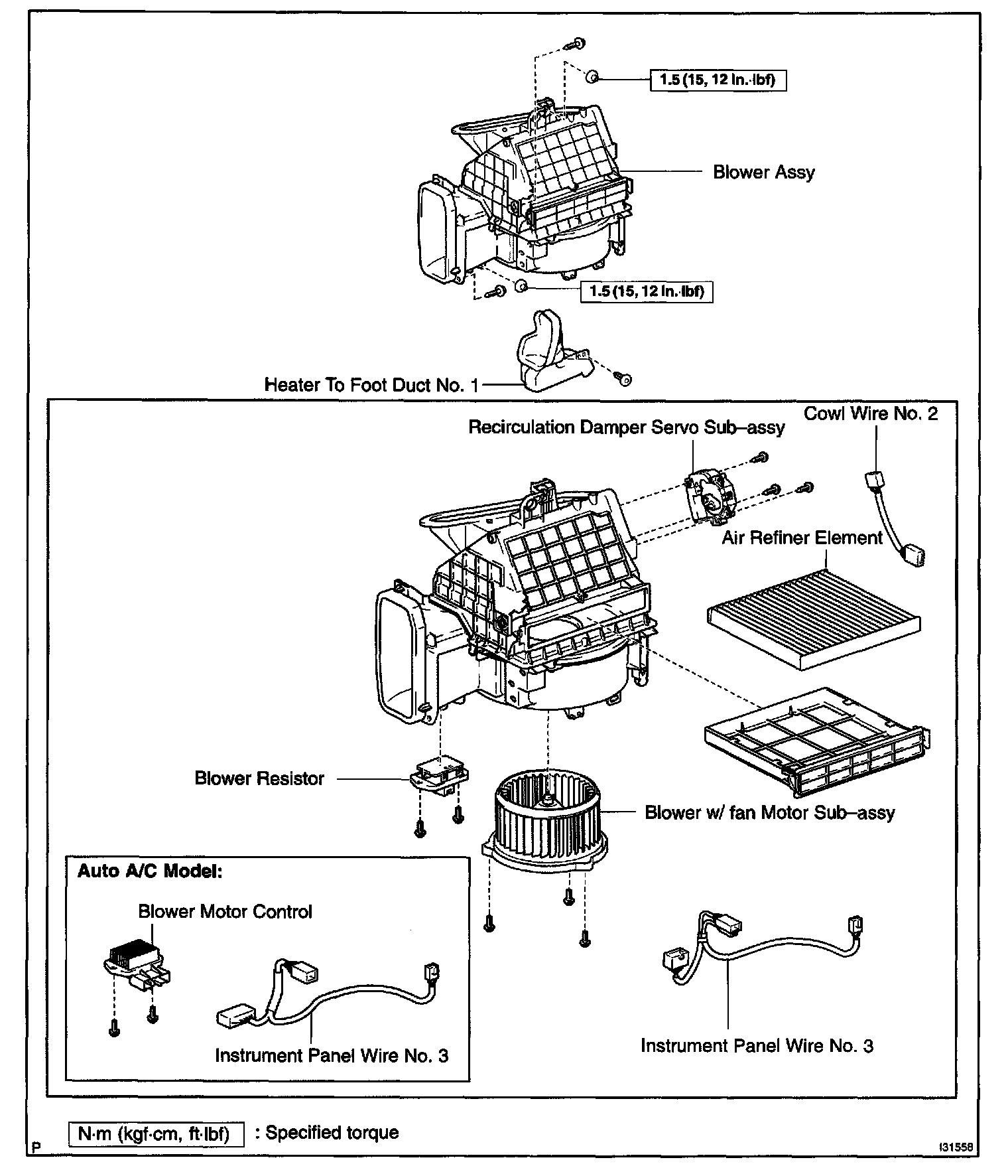 2. REMOVE HEATER TO FOOT DUCT NO.1