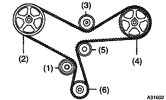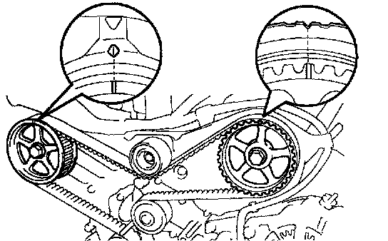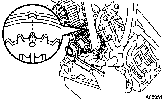 - If adherence of water and/or oil to the timing belt is found, restore the leakage and install a new timing belt.