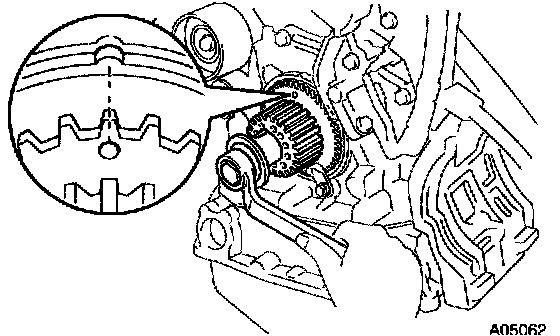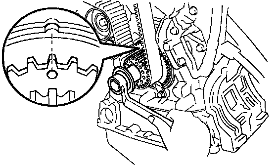 h. Align the, installation mark on the timing belt with the timing mark. of the crankshaft timing pulley.