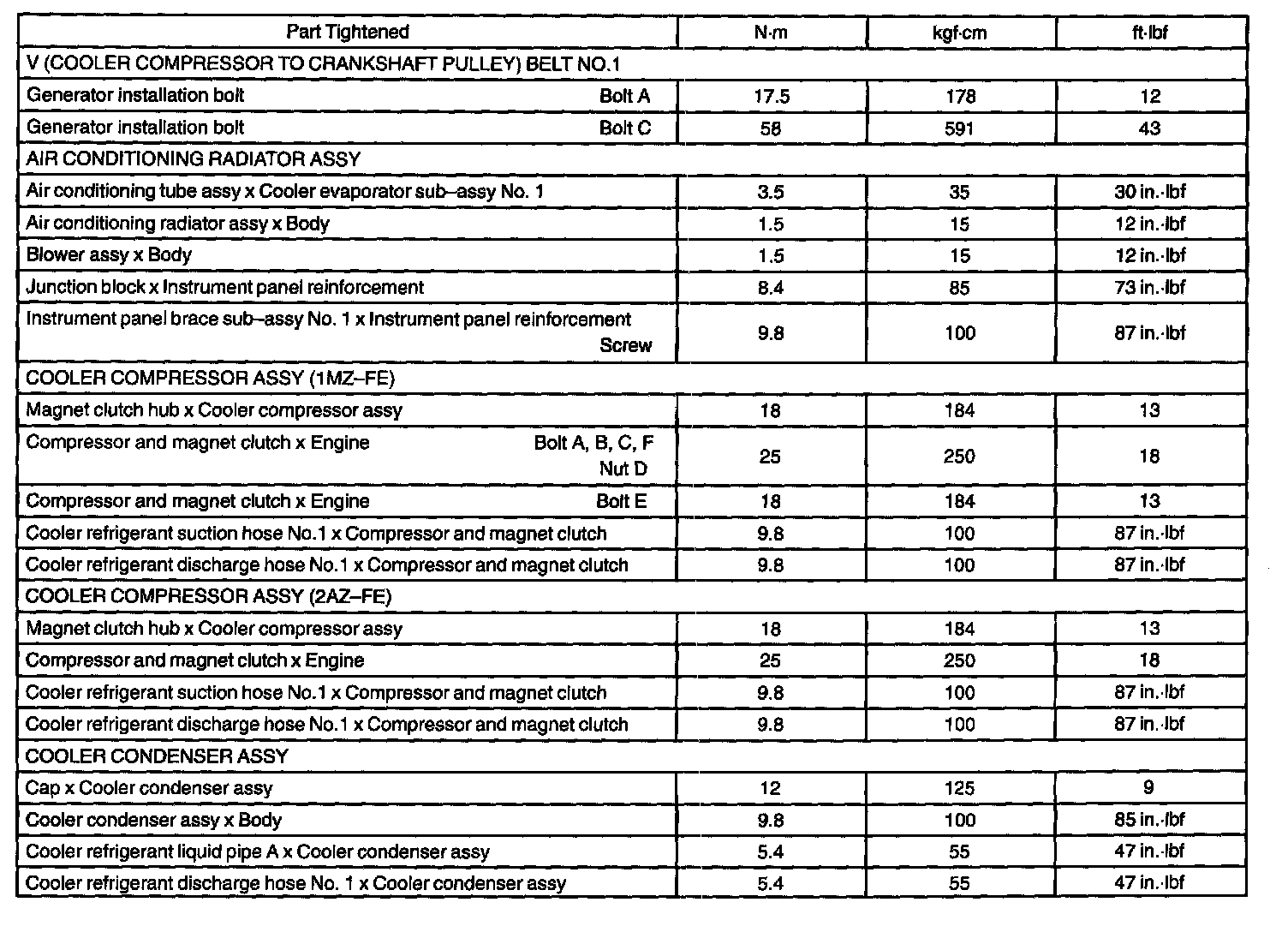 Heater And Air Conditioning - Torque Specification: