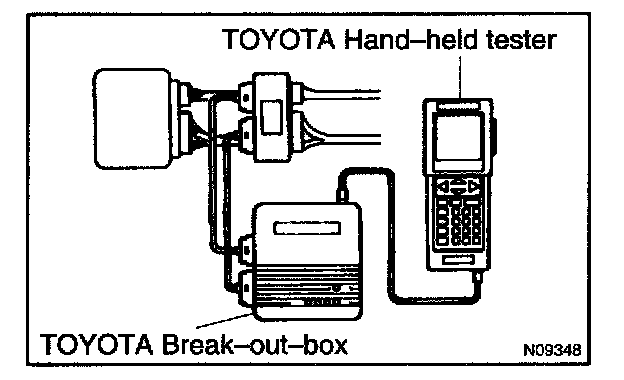 ECM TERMINAL VALUES MEASUREMENT BY USING TOYOTA BREAK-OUT-BOX AND TOYOTA HAND- HELD TESTERa. Connect the TOYOTA break-out-box and TOYOTA hand-held tester to the vehicle.