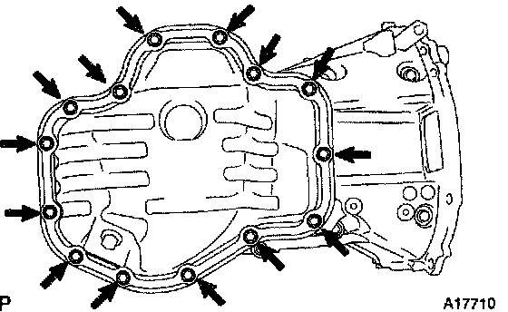 b. Apply seal packing to the oil pan as shown in the illustration.
