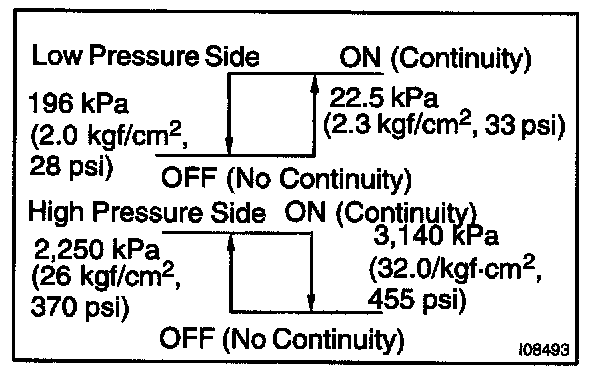 b. Inspect pressure switch continuity (Magnetic Clutch Control).
