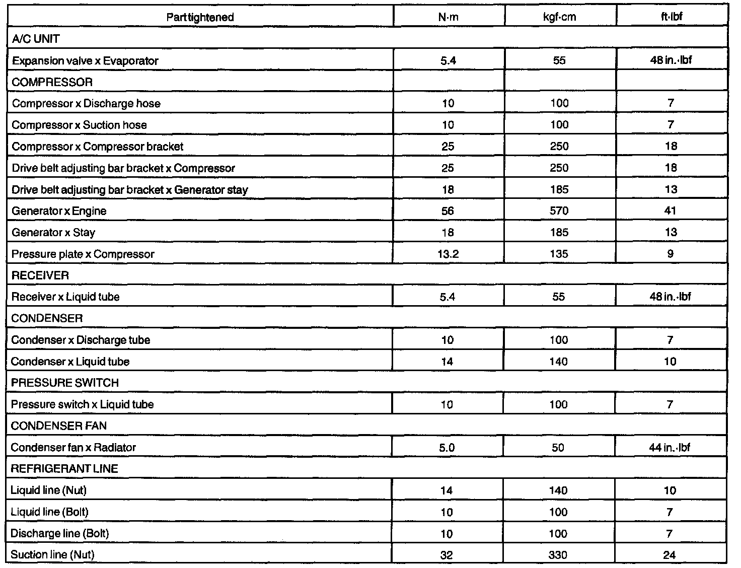 Air Conditioning - Torque Specification: