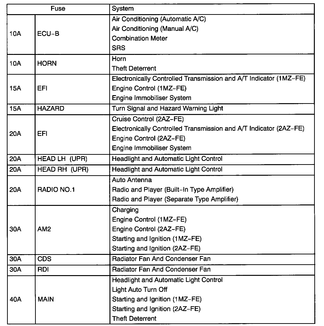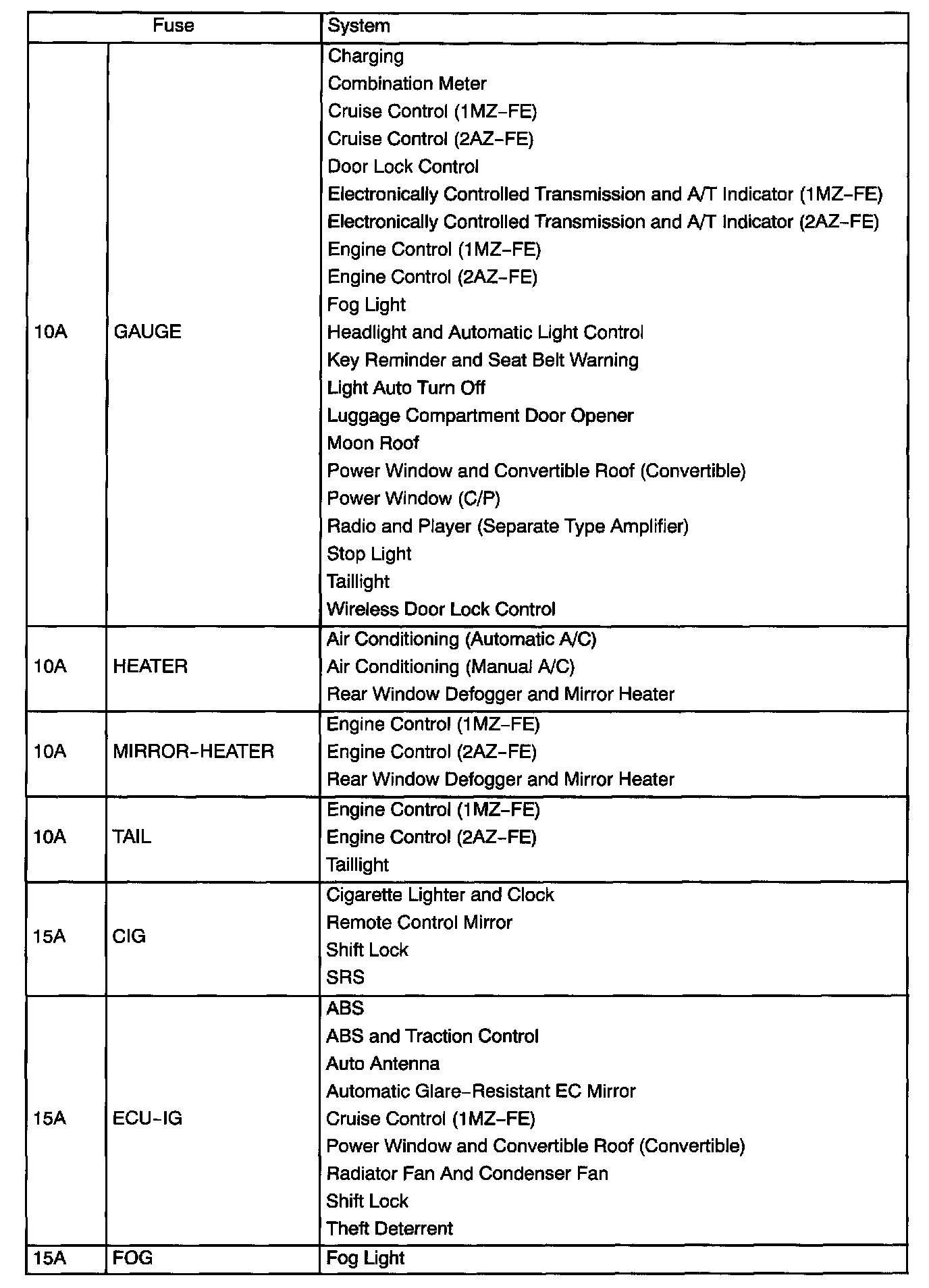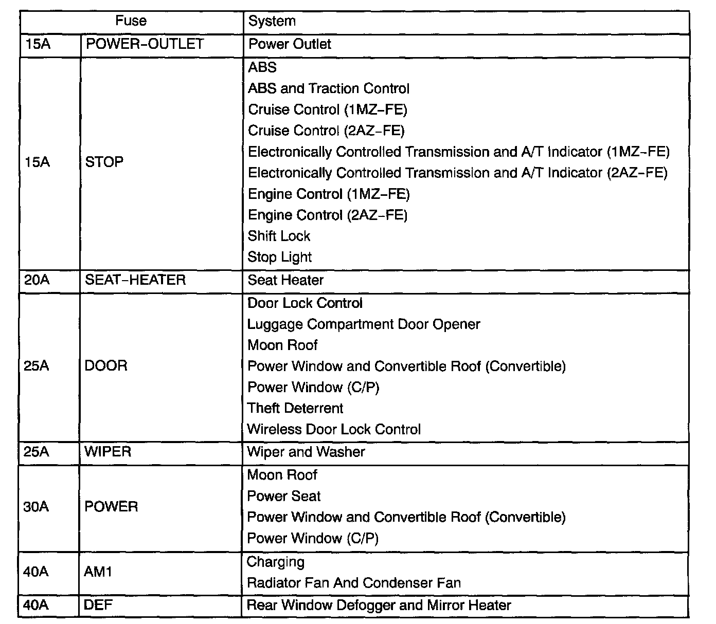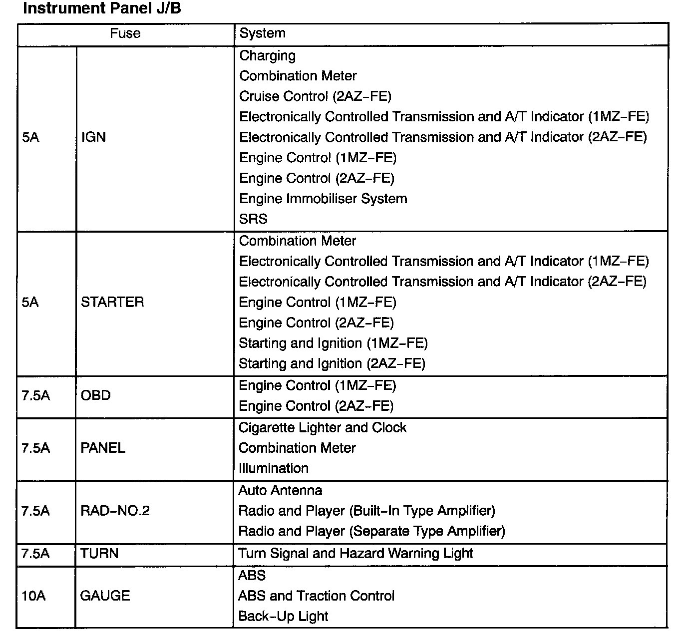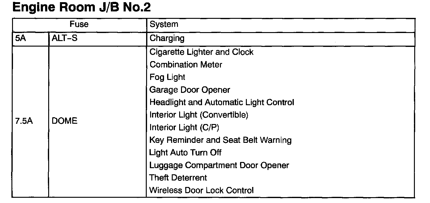Interior Panel Fuse Identification