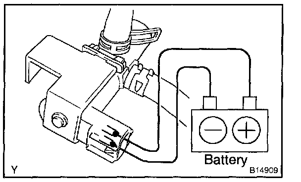 2. Connect the positive (+) and negative (-) leads from the battery to the VSV terminals for the EVAP.