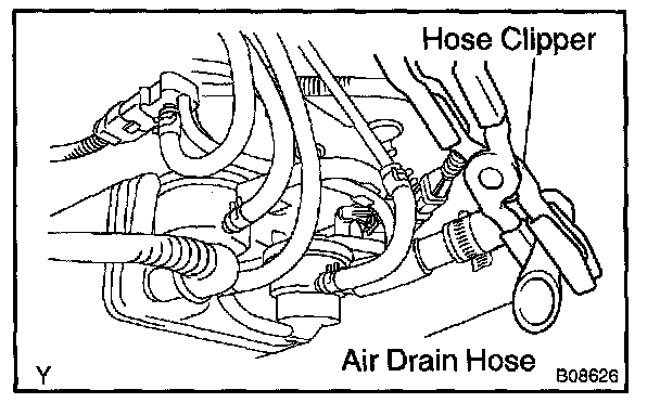1. Close off the air drain hose at the marked position of the canister with a hose clipper or similar instrument.
