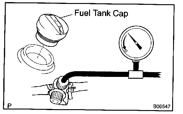 HINT: If the pressure does not decrease when the filler cap is removed, then you can conclude that the hose connecting the service port to the fuel tank is blocked, etc.